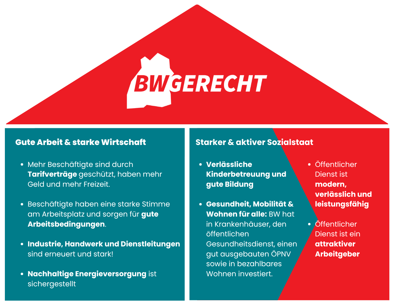 Baden-Württemberg steht vor großen Entscheidungen: Wie wir arbeiten. Wie wir wohnen. Wie wir leben. Wir sagen: Das Land muss gerechter werden – für alle.